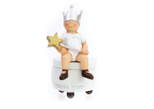 Boîte à dents avec un petit 'roi' qui tient la garde sur la boîte.
