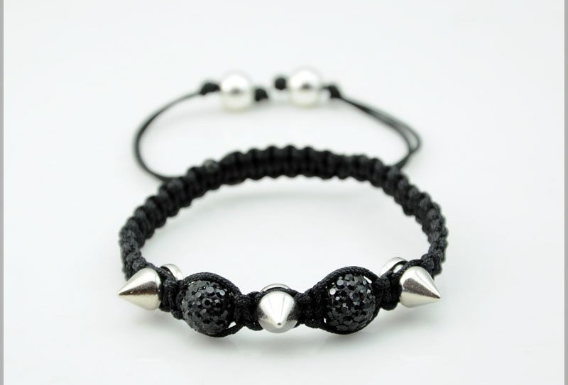 bracelet shamballa spike rock accompagné de 3 pics deux boules serti de cristaux. très tendance et très chic.