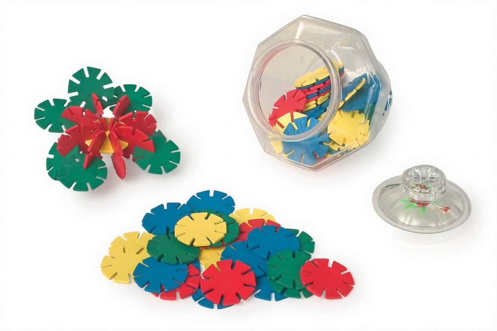 80 éléments dans un seau en plastique. Des étoiles en bois de couleurs à emboîter les unes aux autres pour former de nombreuses choses incroyables. Forme la motricité et la pensée dans l‘espace.