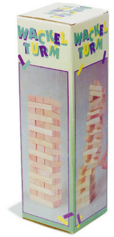 Un défi ludique pour la motricité fine des joueurs de tous âges! Le suspense est aussi grand avec ces pièces en bois massif brut qu‘avec la plus petite version classique parmi les jeux de casse-tête! Seulement une main calme pourra empêcher que la tour s‘écroule!