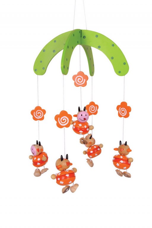 Un adorable mobile en bois verni aux tons doux. Les 5 vaches font le bonheur des yeux d‘enfants avec leurs gentilles petites têtes!