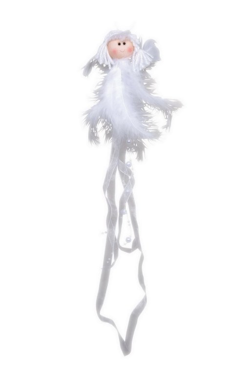 Ces adorables petits anges en plume de duvet sont descendus directement du ciel dans nos maisons ! Des bandes de gaze blanche et des perles soulignent le design aérien de cet objet de décoration à suspendre.