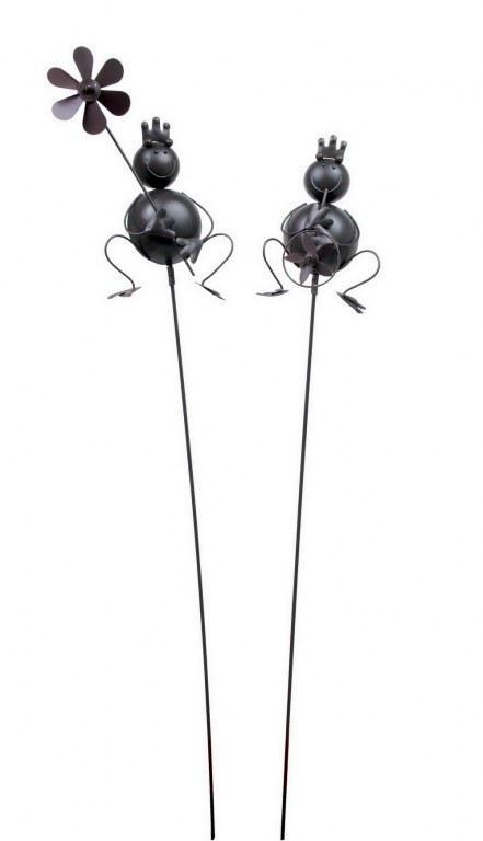 Peintes en marron, ces grenouilles formées dans des coupes en métal constituent un bel accessoire au bord des mares ou dans les parterres! Le vent fait tourner la petite hélice et balancer joyeusement les grenouilles sur leurs petits ressorts!