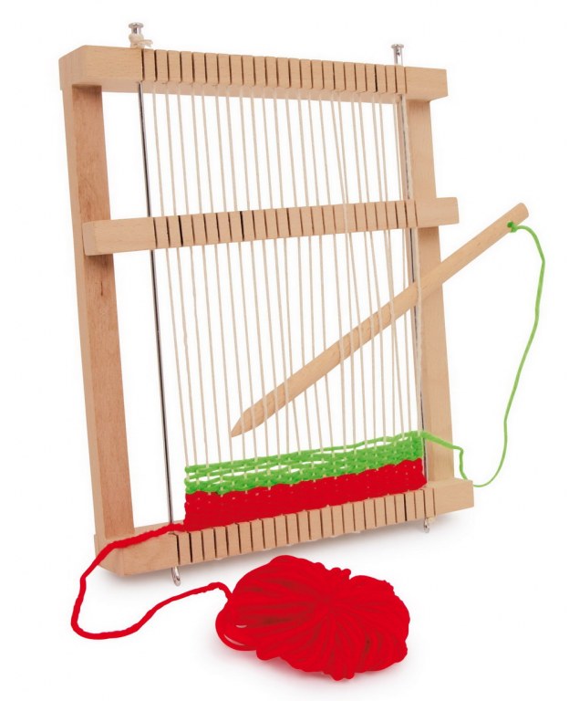 Façonner ses propres créations – ce métier à tisser en bois de hêtre exerce la motricité et la créativité! 4 petites pelotes de laine (4g) en différentes couleurs. De supers variations de conception sont possibles!
