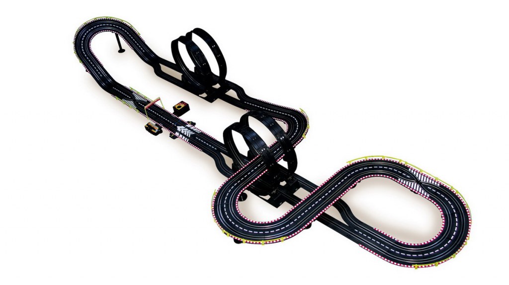 Vainqueur en tournant juste! Sans transfo, sans électricité! Les circuits peuvent être combinés les uns avec les autres! 3,2,1... partit! Les joueurs de tous les âges prennent le départ avec enthousiasme! Les voitures (15 x 5 cm) sont placées sur leur voie, et c'est au "conducteur" de jouer, car les voitures avances par rotation des dynamos! Plus la rotation sera rapide et régulière, plus les voitures fileront vite dans les virages et les lignes droites! Un haut-parleur donne le son, un lecteur mp3 classique peut être branché pour faire entendre une musique rythmée ou les bruits de fond d'une course pleine de suspens!
