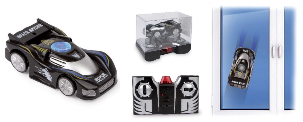 Peu importe s‘il s‘agit du parquet, des murs ou même des fenêtres – cette voiture de course semble défier la gravitation et roule facilement sur toutes les surfaces lisses ! Après avoir choisi un mode, la voiture file sur le sol ou – est-ce possible ? – fait ventouse sur les fenêtres et même au plafond ! Selon la direction, les phares ou les feux arrières s‘allument! Beaucoup de liberté de mouvement grâce à la technique infrarouge! Solidité grâce à la construction légère. Rechargement rapide de la voiture avec la télécommande infrarouge (16 x 9 cm).