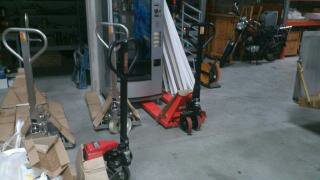 Vente de trans-palette neuf levage 2 tonnes (trans-palettes rouge sur la photo)