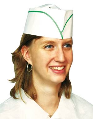 Calot plat réglable blanc liseré vert BOITE DE 100 CALOTS