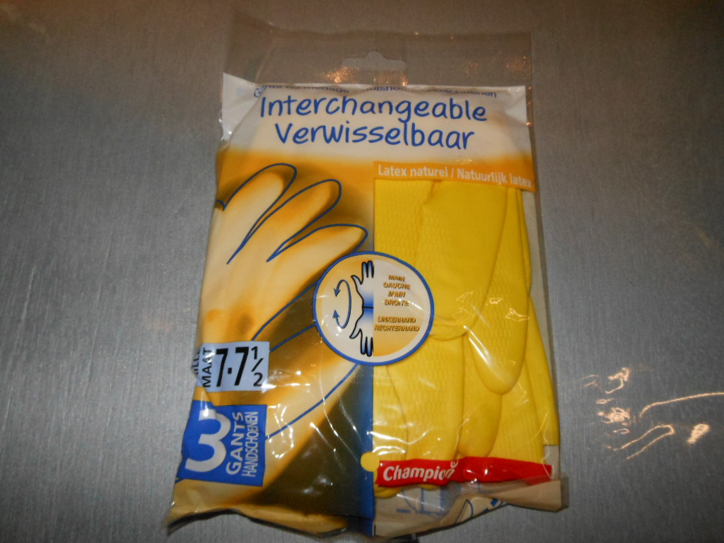 GANTS DE MENAGE INTERCHANGEABLE LATEX NATUREL LOT DE 3 GANTS.