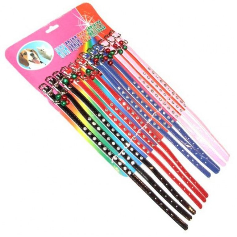 Carte présentoire de 12 colliers strass, long 30cm x 1cm, coloris assortis