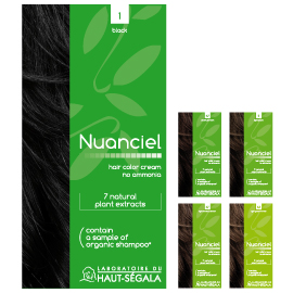 La coloration permanente NUANCIEL dure environ 5 semaines et couvre totalement les cheveux gris et blancs.