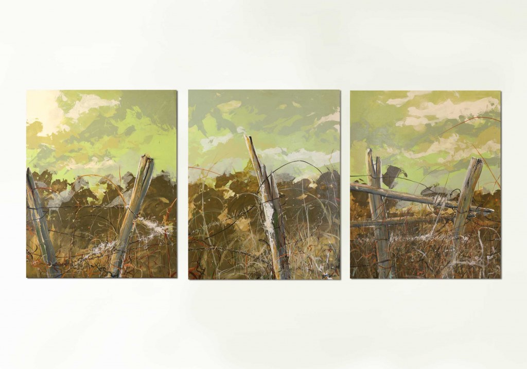 Tableaux acrylique fais main artiste thomas bertrant taille des toiles 100 par 100 cm,represantation le champ triptyque .