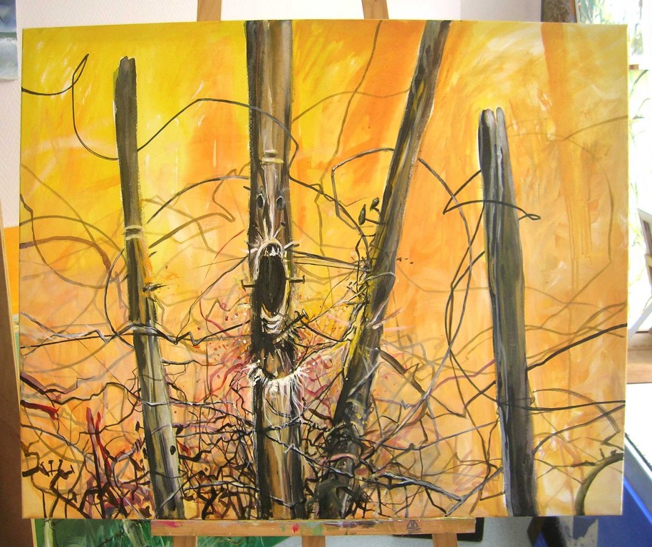 Tableaux acrylique fais main artiste thomas bertrant taille de toile 80 par 100 cm,nom de cette oeuvre : le sourrie du poteau .