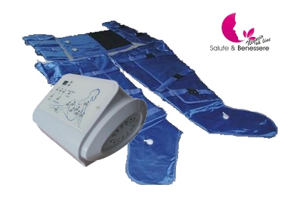 Cette machine professionnelle est composée par une unité centrale, deux bottes, un corset et deux manchons à l'intérieur desquels se trouvent 8 coussins indépendants d'air qui se gonflent et se dégonflent avec une fréquence préréglée en effectuant un massage sur tout le corps. Les traitements avec cette machine professionnelle permettent d'augmenter le flux veineux et lymphatique et d'améliorer le drainage des liquides en excès tout en facilitant l'élimination des toxines. La peau des jambes et des bras est oxygénée et ravivée. Elle est idéale pour le traitement de la cellulite : soulage la douleur et l'enflure en donnant un confort immédiat. Les bénéfices obtenus sont: l'action détoxifiante, la tonification des muscles, le remodelage du corps, l'action amincissante, l'amélioration du drainage des liquides, la réduction de la cellulite, l'action relaxante.