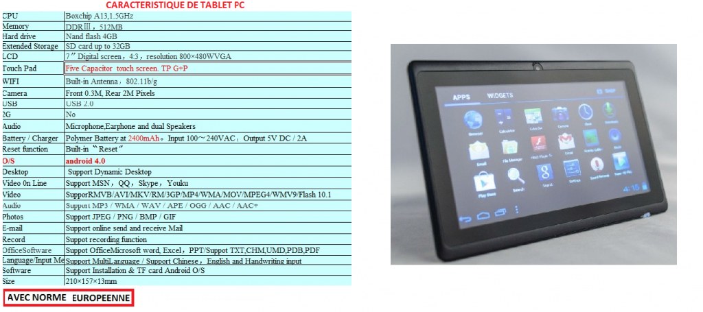 C'est une nouvel Tablet norme CE européenne garantie 1 an c'est un produits qui es beaucoup connu en Europe de marque les prix est varié au niveau de la quantité. Notre société YMTC est responsable de la garantie des produits.