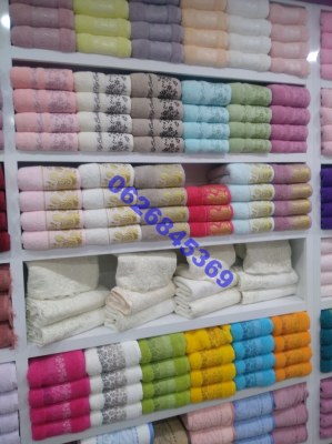 GROSSISTE SERVIETTES 100 % COTON à partir de: Gant coloris assortis coton = 0,25€ pièce Serviette 100 % coton 30 x 50 cm = 0,37€ pièce Serviette 100 % coton 40 x 60 cm = 0,70€ pièce Torchon 50 x 70 cm = 0,50€ pièce Serviette 100 % coton 500 gr/m² 50 x 100 cm = 1,05€ pièce Drap de Bain 100 % coton 500 gr/m² 70 x 140 cm = 2.10€ pièce Drap de Bain 100 % coton 500 gr/m² 100 x 150 cm = 3,40€ pièce Maxi drap de Bain 100 % coton 500 gr/m² 100 x 200cm = 4,40€ pièce Peignoir Adulte Col...