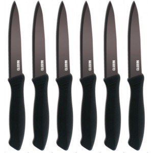 6 Couteaux céramique 4" : Lame noire - Set de couteaux de table