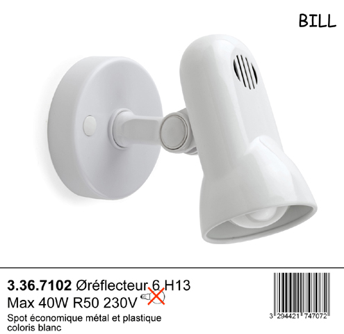 SPOT CHEAP BASE PLASTIQUE ET REFLECTEUR METAL BLANC. VENDU SOUS SACHET PLASTIQUE ET SANS VIS. HAUTEUR TOTALE 13 CM DIAMETRE BASE 8 CM DIMENSION REFLECTEUR 6X10,7.