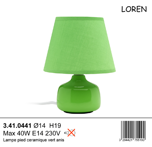 LAMPE CERAMIQUE LOREN VERTE H19cm
