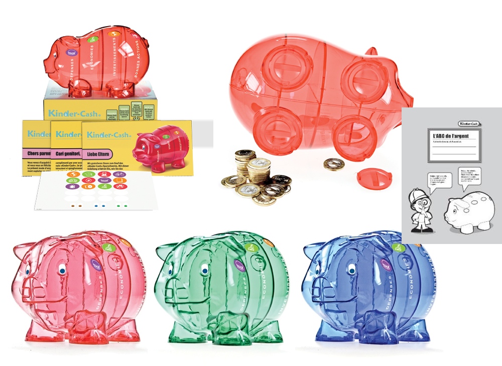La tirelire Kinder-cash est idéale pour enseigner aux enfants à gérer l'argent. Elle a 4 compartiments pour apprendre à gérer un budget/ argent de poche.