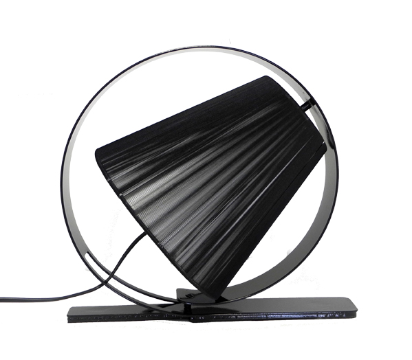 Lampe à poser en Aluminium et en tissu de couleur noire.