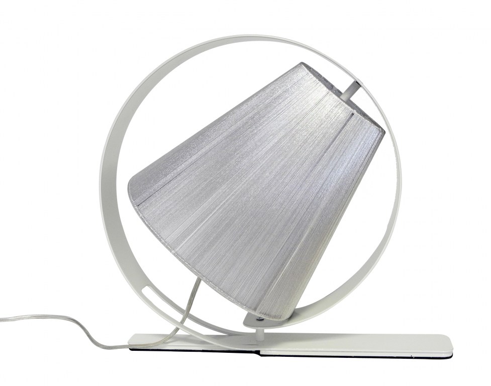 Lampe à poser en Aluminium et en tissu de couleur argentée.