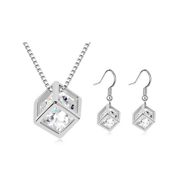 Très belle parure scintillante forme carrée, composée de boucles d'oreille et d'un collier avec pendentif assorti.