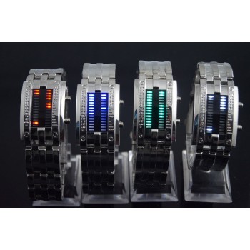 Montres ultra-modernes disponibles en plusieurs coloris, style armée avec heures et minutes se lisant avec les lumières, bracelet métallique.