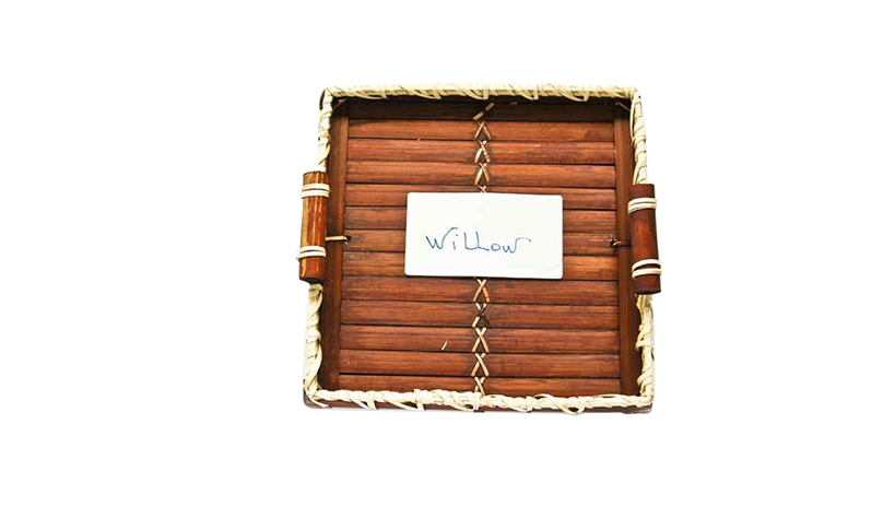 Corbeille en bois et bambou . 720 pièces . 18,5 x 18,5 x 4,5 cm. Prix unitaire H.T. 1.40 €