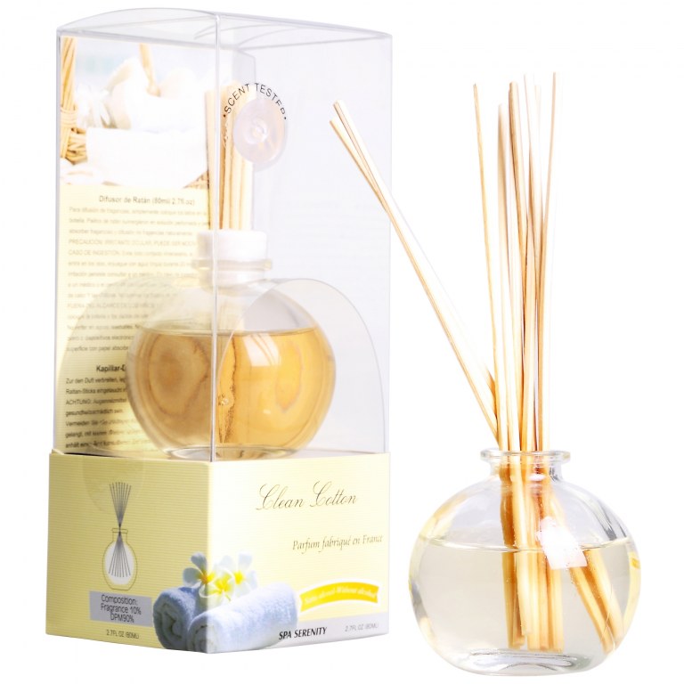 - Contenu : un flacon contenant 80ml de parfum d'ambiance, 10 tiges rotin. Packaging soigné en français, anglais, espagnol et allemand.