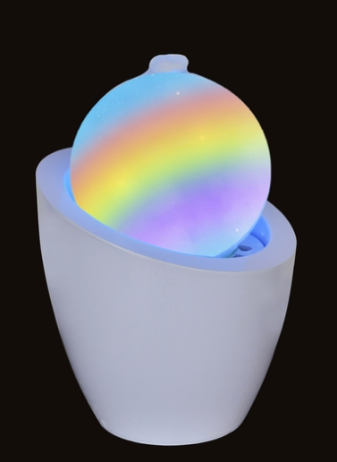 La fontaine d'intérieur Romantica jouit d'un design aux lignes épurées lui donnant une certaine élégance. D'un blanc immaculé, elle est composée d'une vasque en fibre de verre dans laquelle se trouve une sphère qui se recouvre perpétuellement d'eau. La particularité de ce modèle réside dans son éclairage led illuminant la sphère en effectuant automatiquement un dégradé de couleur. Un objet décoratif qui suscitera rapidement la curiosité et le besoin.