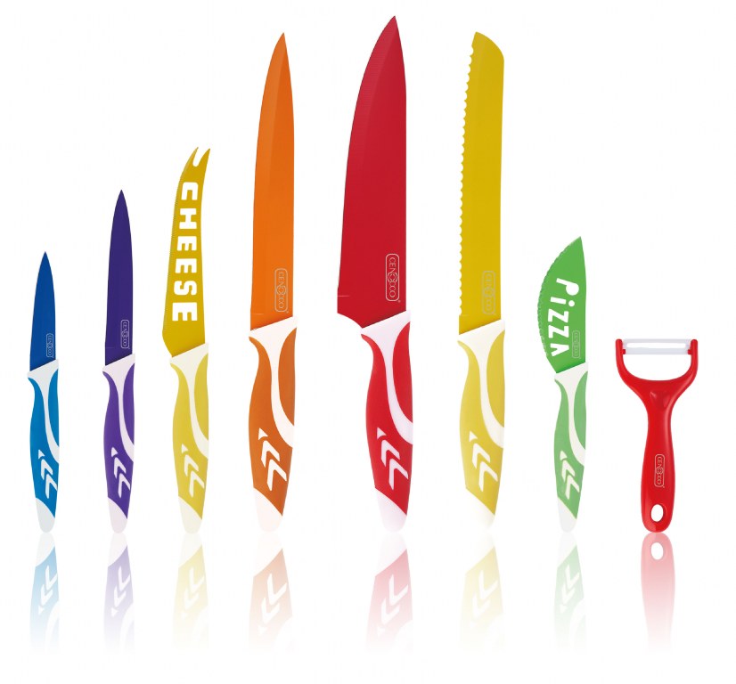 7 Palettes de coffret couteaux Cenocco - Nouvelle collection (avec couteau à pizza et fromage)