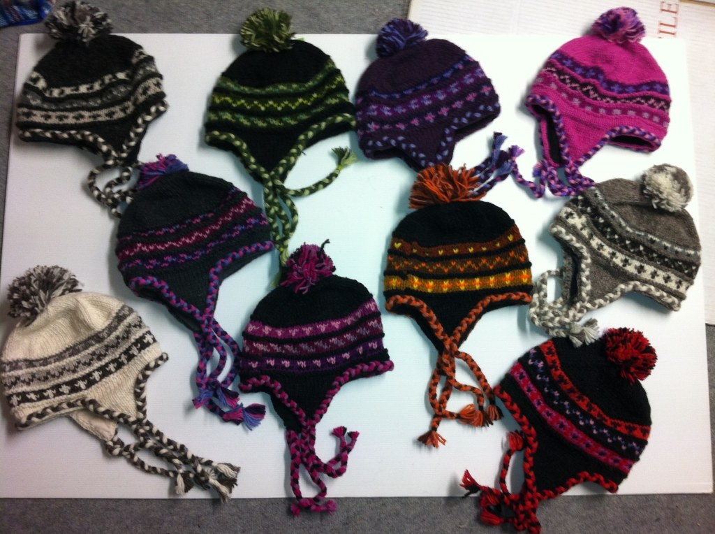 nous destockons un lot de bonnet que nous faisions faire au Népal, tous "fait main" et doublés polaire.