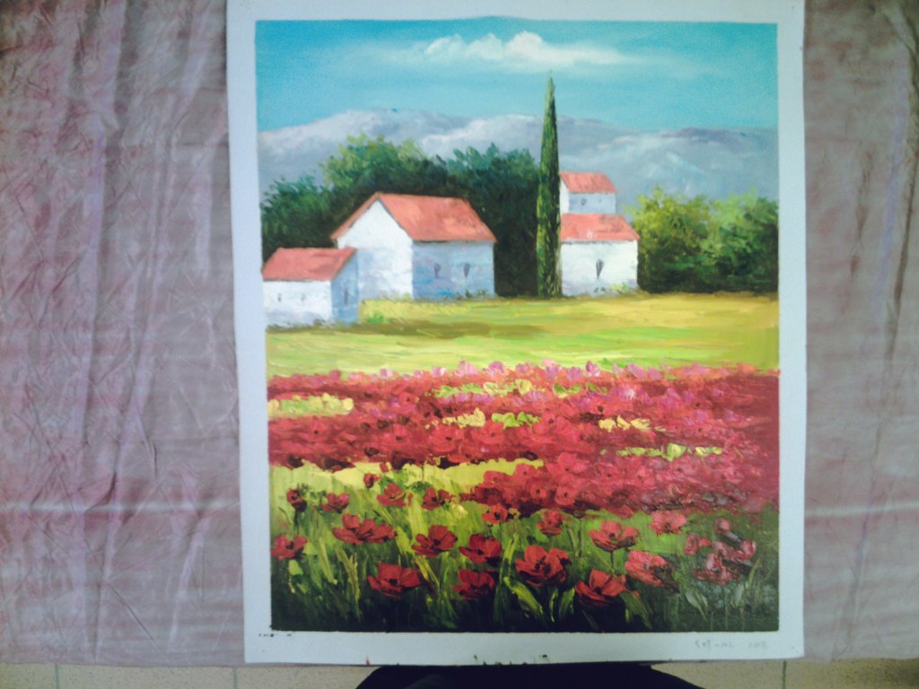 bonjour ,je vends un lot de toiles peintes main d'importation avec des sujets de paysages,fleurs,marines