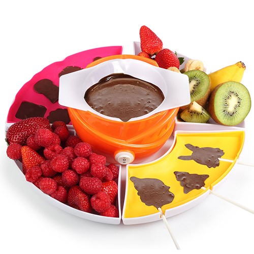 Acheter Fondue au Chocolat | Tristar CF-1604 au meilleur prix. Appareil à fondue au chocolat avec 3 fonctions, 4 fourchettes et 24 bâtonnets. Goûtez de nouvelles recettes de chocolat avec cet appareil à fondue 3-en-1 ! À l'aide de cet appareil coloré vous pouvez fondre du chocolat, faire de la fondue ou baigner en chocolat. Faites vos propres sucettes et bonbons en chocolat ! La fondue au chocolat Tristar CF-1604 est une vraie fête du chocolat !