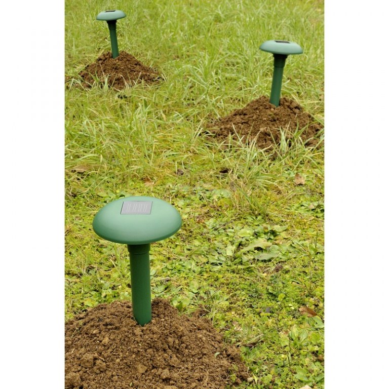 Faites fuir : taupes, mulots,… sans affecter les enfants ou les animaux domestiques. Économique et efficace. Grande autonomie, il fonctionne de jour comme de nuit. L'appareil doit être implanté dans une zone où des taupes ont établi leur galerie. Il est conseillé d'enfoncer le pied du chasseur de taupe jusqu'à ce que la "tête" soit à environ 10 cm du sol. Il est également conseillé de modifier l'emplacement du stop taupe de temps à autre pour éviter les phénomènes d'accoutumance des nuisibles. Informations techniques Couvre jusqu'à 500 m2. Lot de 3 stop taupes solaires. Hauteur du piquet : environ 20 cm Diamètre de la tête : environ 12 cm Dimensions du capteur solaire : 4 cm x 4 cm Cet appareil fonctionne avec une pile AAA fournie qui se recharge à l'énergie solaire. L'accumulateur permet un fonctionnement durant une période de 60 jours sans recharge solaire. L'anti taupe est étanche. Sans danger pour les êtres humains et les animaux domestiques.