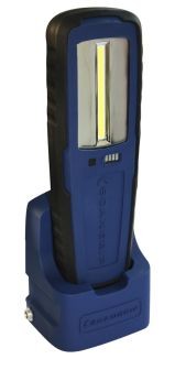 Nouveau : lumière LED portable et rechargeable COB. Design étudié pour l'usage professionnel. Cette nouvelle lumière LED fournit un éclairage unique pour le travail. Elle est protégée par une surface en caoutchouc très résistante et étanche (IP65) pour supporter des ambiances de travail humide et sale. Vous pouvez la positionner n'importe où avec son solide crochet ou bien avec son aimant sur la partie arrière. Elle peut aussi s'accrocher à votre ceinture de travail. L'indicateur de batterie sur la partie avant vous permettra de la recharger en cas de besoin. Le chargeur est équipé d'un aimant sur la face inférieur pour le maintenir sur votre plan de travail.