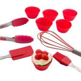 Avec ce kit (10 pièces) vous aurez tout le nécessaire pour préparer de bons cupcake, les enfants adorent ça et ils peuvent aussi vous aider à les cuisiner, une bonne activité à découvrir en famille. 6 moules en silicones pour cupcake 1 fouet 1 maryse en silicone 1 spatule en silicone 1 pinceau en silicone