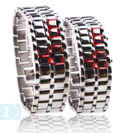 Grossiste,fournisseur chinois: Black Metal bande numérique de lave de fer de style quelques sports led rouge montre-bracelet sans visage