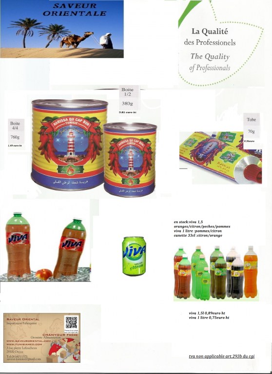 harissa la flamme de cap bon meilleur qualité 4/4 1.18ht / 1/2 0.69ht / et tube 70gr a 0.29ht