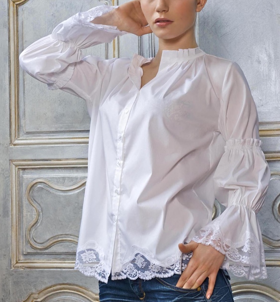 col mao agrémenté de pli sur le devant se prolongeant de chaque coté de la patte de boutonnage