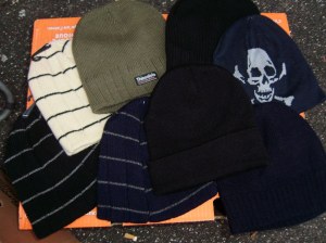 vend, cause céssation d'activité un lot de 101 bonnets (homme et enfant) regroupant: bonnet classique, chapka, caches oreilles, bonnet péruvien + 143 paires de gant (homme,femme, enfant) regroupant : plusieurs