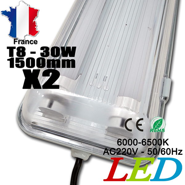 PLAFONNIER DOUBLE NEON LED 2X30W2 TUBES DE 30W DE 150CM MODEL T8 INCLUSA PARTIR DE 59.90€