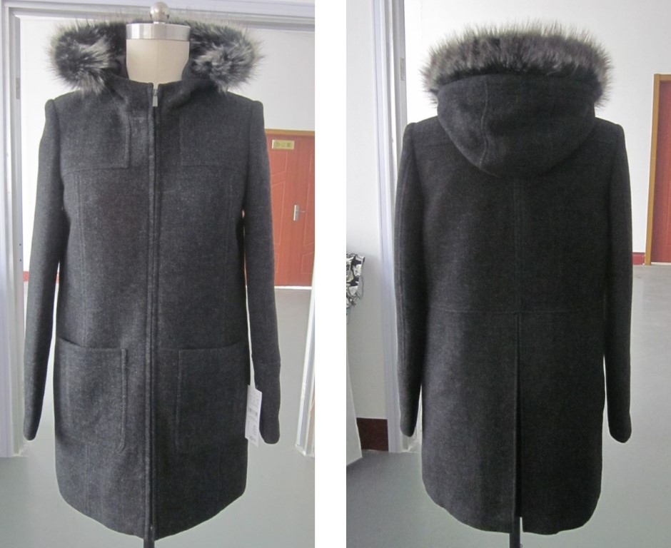 53% de laine, fermeture avec zip et pressions, fourrure amovible