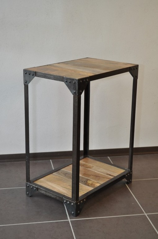 Les angles sont renforcés par des cornières rivetées,les deux plateaux,très pratiques,permettent de mettre en avant plantes et objets de décoration,
