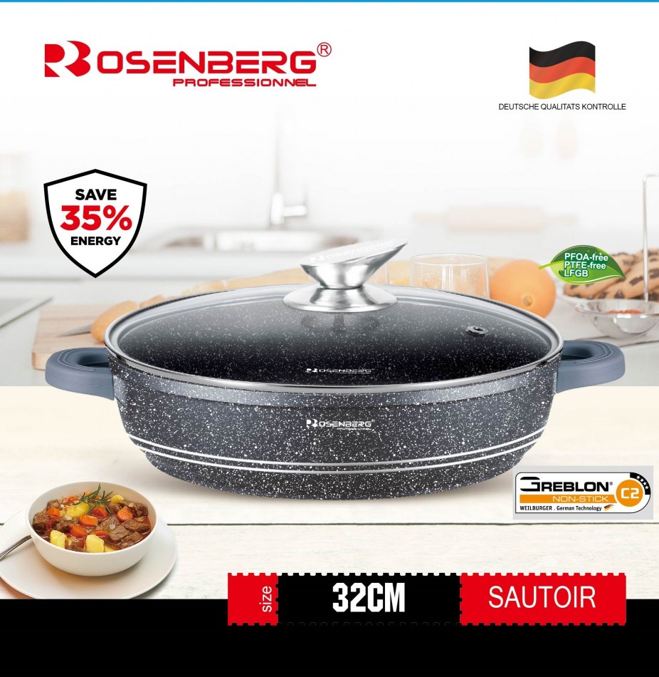 SAUTOIR Faitout - Revêtement pierre de GREBLON - Couvercle en verre poignet silicone