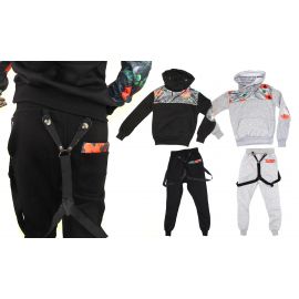 Ensemble Jogging garçon composé d'un pantalon et d'un sweat.Produit de haute qualité avec motifs à fleurs oranges trés actuels.Finitions et coutures irréprochables.Prix exceptionnel pour une vente en gros de jogging enfants age 8/16 ans