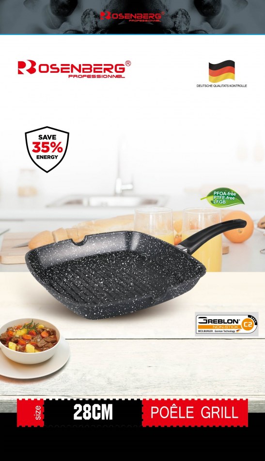 Poêle - GRILL 28CM- REVÊTEMENT PIERRE Marble - Tous feux + induction