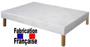 Sommier tapissier de fabrication française, structure en pin massif, lattes en pin massif recouvert de tissu coton.