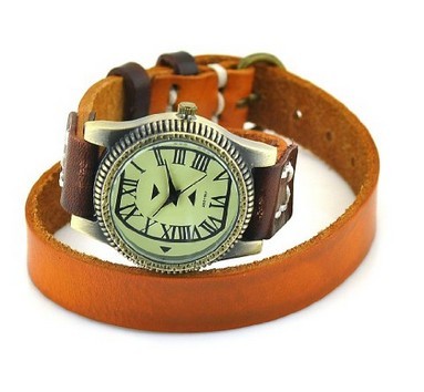 Montre avec bracelet cuir veritable, model femme avec nombres en chiffre romain